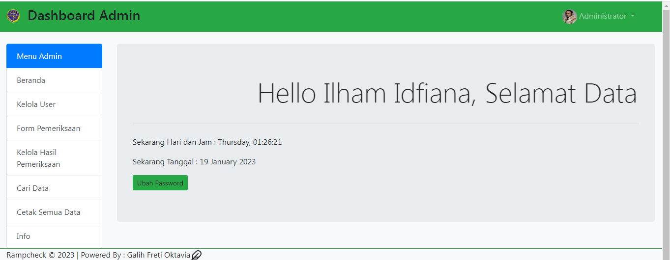 sekitar 2 bulan yang lalu pacar saya meminta bantuan untuk membuat sistem informasi rampcheck. sistem ini hanya untuk pengecekan saja yang dimana ketika di check maka hasil tersebut akan tersimpan didatabase dan dapat melakukan hasil print out sesuai dengan bagian administrasi.